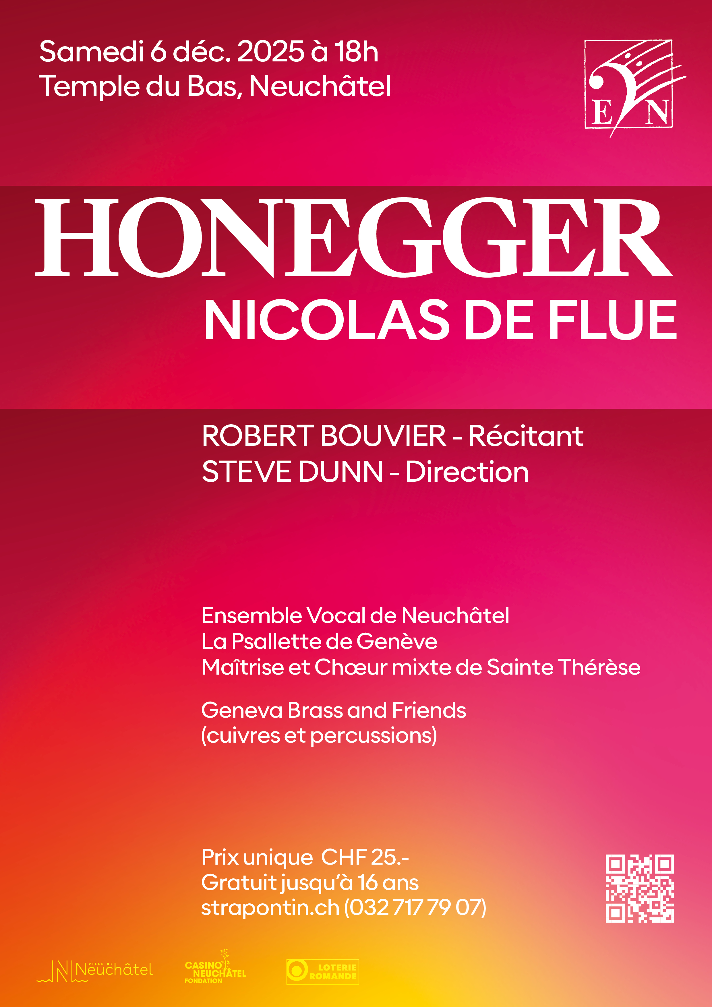 Samedi 6 décembre 2025 à 18h au Temple du Bas à Neuchâtel